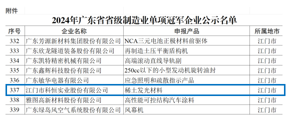 2024年7月,科恒股份獲廣東省制造業(yè)單項冠軍企業(yè)。